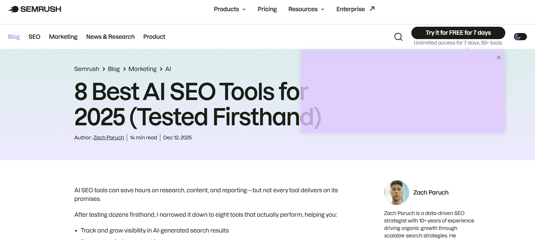 Pros: Massive database; industry standard; excellent for traditional SEO. Cons: Not natively built for "AI citation" optimization; can be overwhelming for small teams.