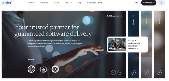 Eleks is the heavyweight on this list, operating large distributed teams under mature ISO-certified processes. What differentiates them is a focus on data-intensive, AI-enhanced SaaS. Engineers design Kafka pipelines, serverless inference engines, and ML model governance far earlier than most vendors.