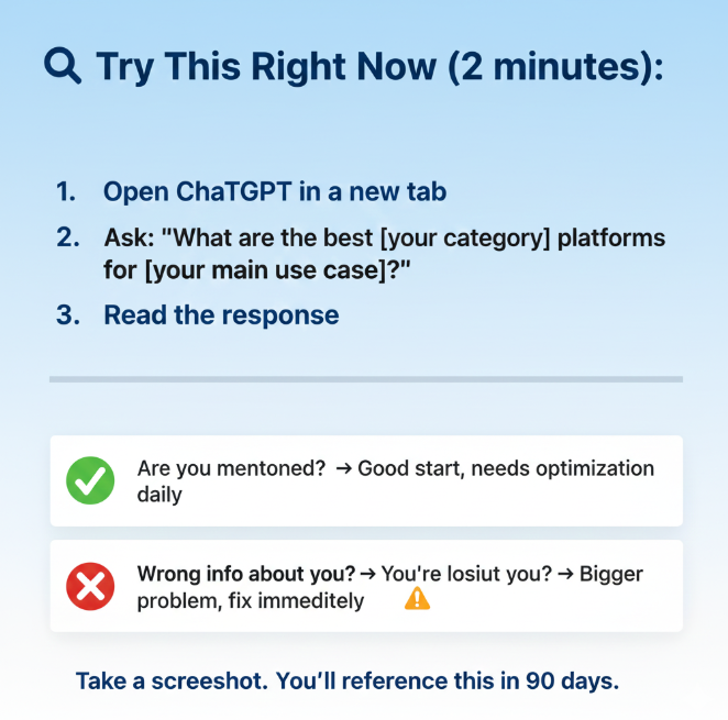 Start today: Ask ChatGPT about your category. Document where you stand. Then begin Phase 1.