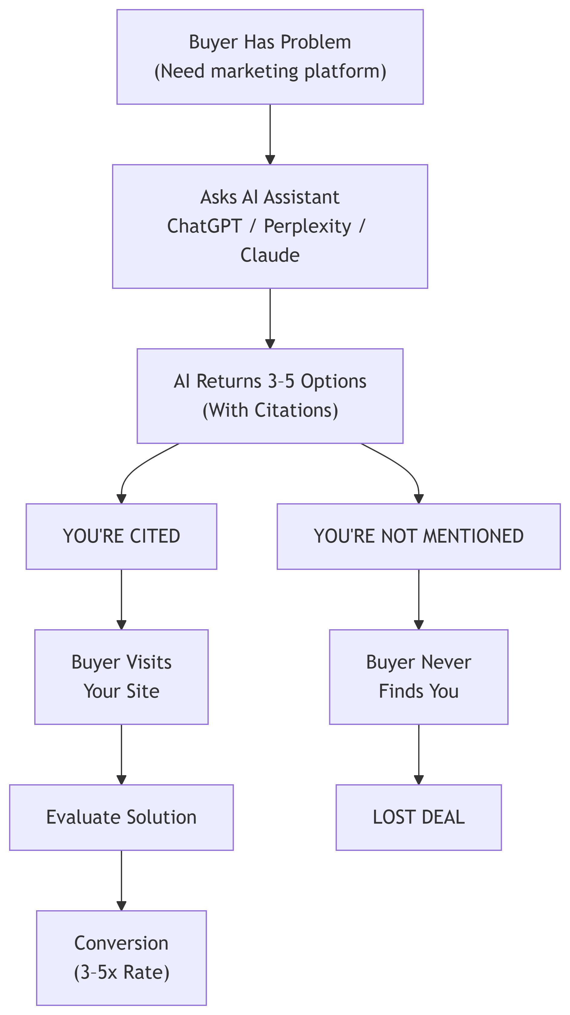 Buyer Problem → Asks AI → Gets 3-5 Options → Visits Only Those Sites → Makes Decision