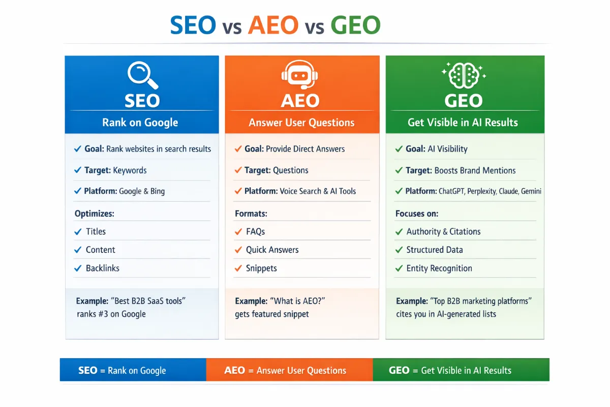 No—it improves them. The content you create for AI visibility (structured data, comparison pages, FAQ content) also ranks well on Google. You're not choosing between SEO and AEO; you're doing both.